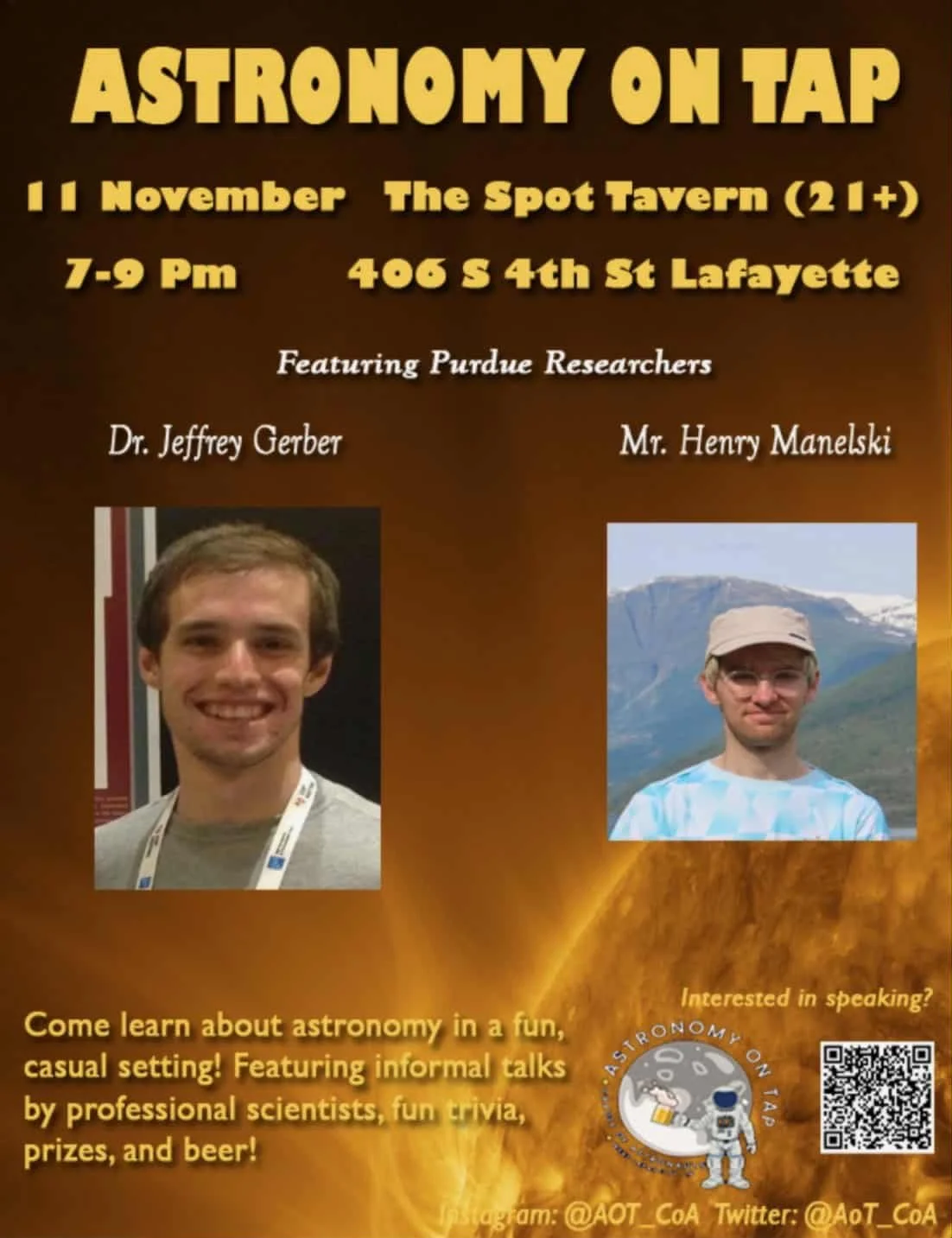 Come learn about astronomy in a fun, casual setting! Featuring informal talks by professional scientists, fun trivia, prizes, and beer!